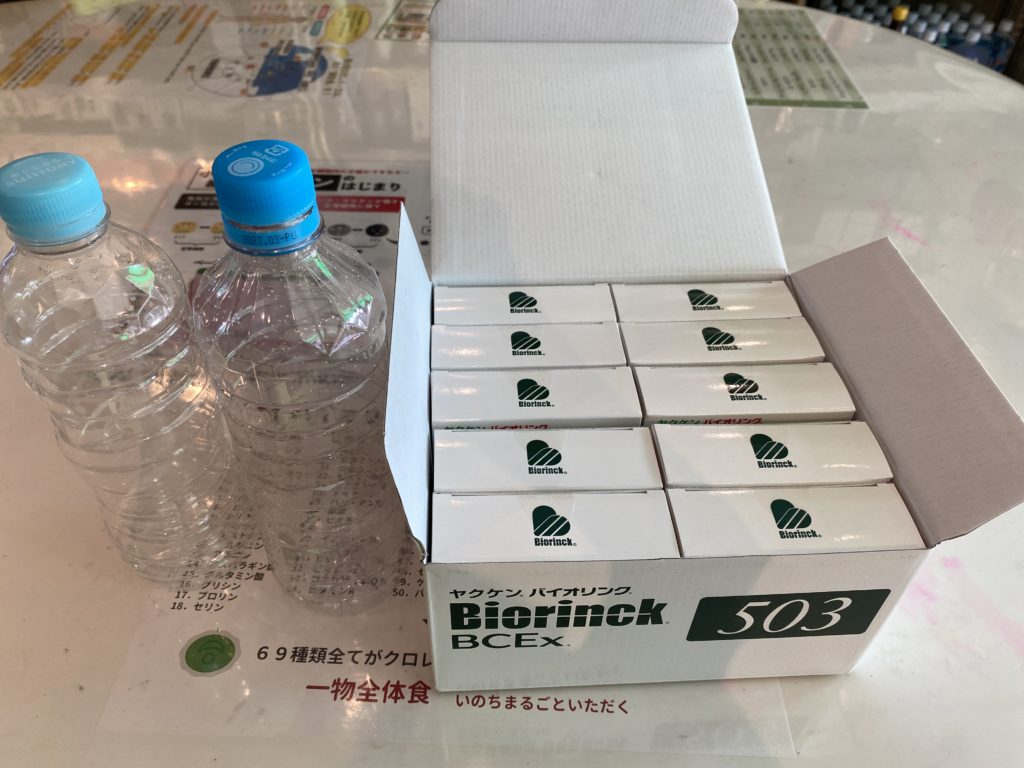 500ミリのペットボトル2本に503を30本注ぎ入れます。この準備が大変ですが、30本飲み切るためには大事で、これは、一本ずつ開けて飲んでいたら、30本飲みきれずに終わってしまいがちだからなのです。飲みきるぞ!という覚悟でもあります。