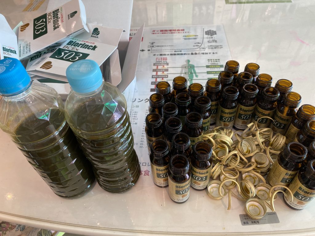 座ってうとうとしているうちに、胃も頭もスッとしてきて、3時間ほど開けて残りの15本へ!するとまた睡魔が!ストレスも疲れもないつもりですが、やっぱり、溜まっているのでしょうね。また、夕方うとうとしたあと、残りの少しを飲み切りました。